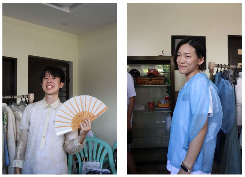 7 July 2023 – Taiwanese LAKBAY fellows, Mr. Bing-Heng, Lee (left) and Ms. Chih-Hsin, Liao (right) try on the Philippine National Costume, Barong Tagalog (left) and Baro’t Saya (right)