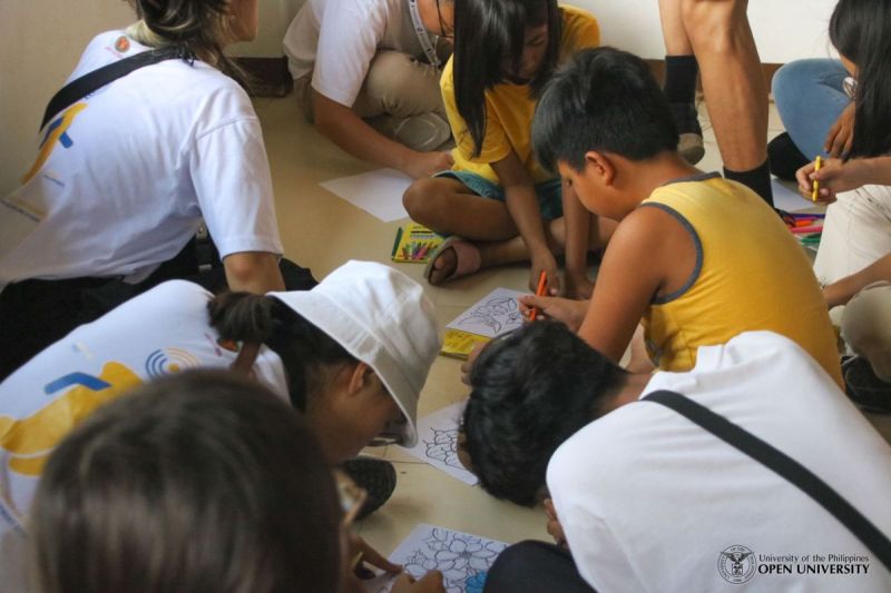 9 July 2023 – Project LAKBAY fellows facilitating a drawing and coloring activity for the children of Gawad Kalinga LB Ville.
