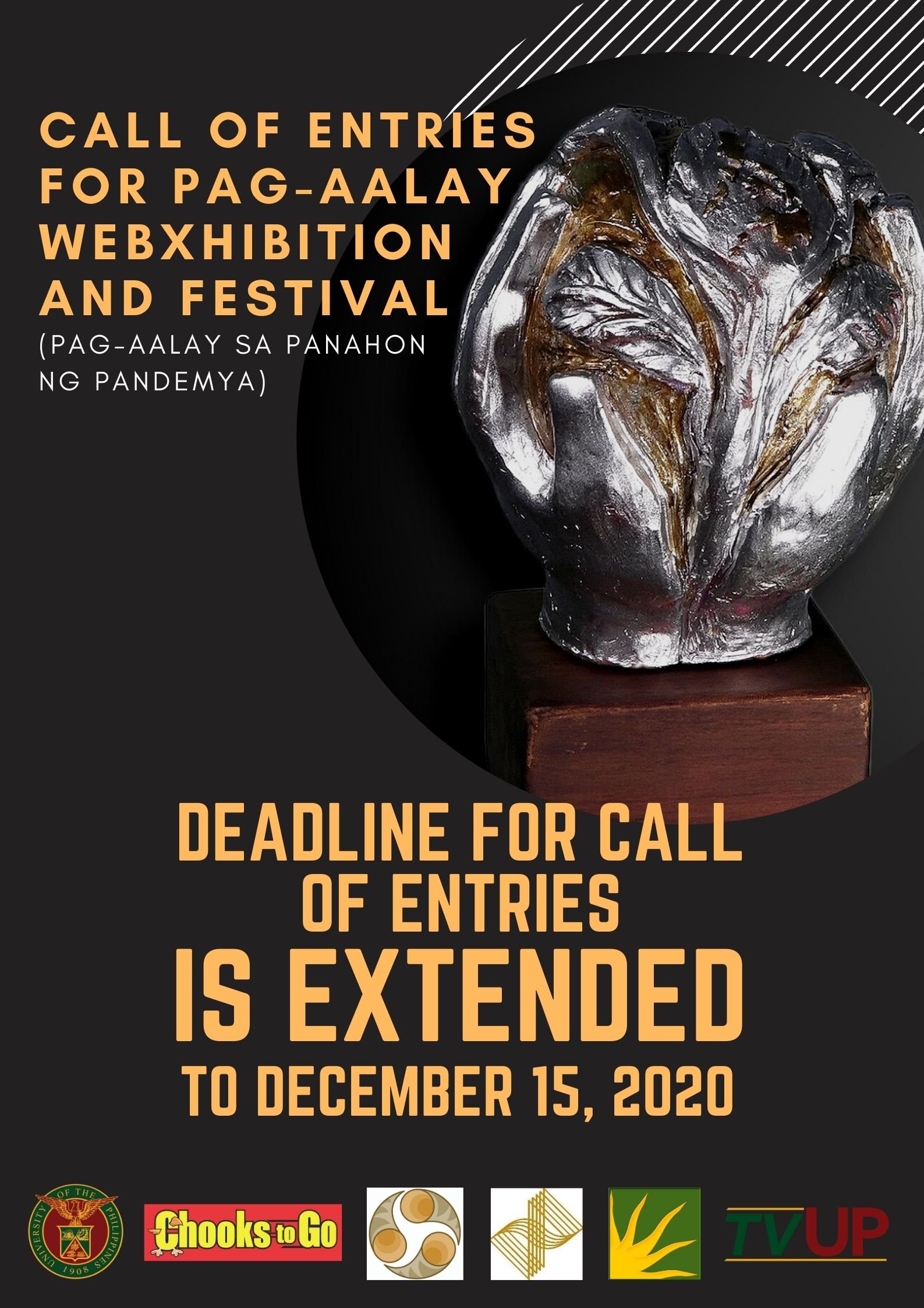 The PAG-AALAY webXHIBITION & FESTIVAL is brought to you by the University of the Philippines, Chooks-To-Go, UP College of Mass Communication, UP College of Music, UP College of Mass Communication Foundation, Inc., and TVUP.