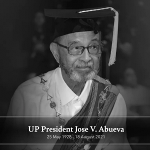 As a dedicated educator, Abueva served the University as Professor of Political Science and Public Administration from 1993 to 1998 and Professor Emeritus of Public Administration and Political Science from 1998 onwards. In 2000, he and several other UP faculty members established the Kalayaan College, becoming its first President. Kalayaan College, a private, four-year college now located in Quezon City and accredited by the Philippine Commission on Higher Education, follows UP’s curriculum. UP faculty comprises most of its founders and professors. As a reflection of Abueva’s own commitment to national development and peace, Kalayaan College’s core values are anchored on the 1987 Constitution: helping build “a just and humane society…”; helping build “democracy under the rule of law and a regime of truth, justice, freedom, love, equality, and peace…”; learning for truth, professional competence, and leadership for the common good; and contributing to global peace and human development.