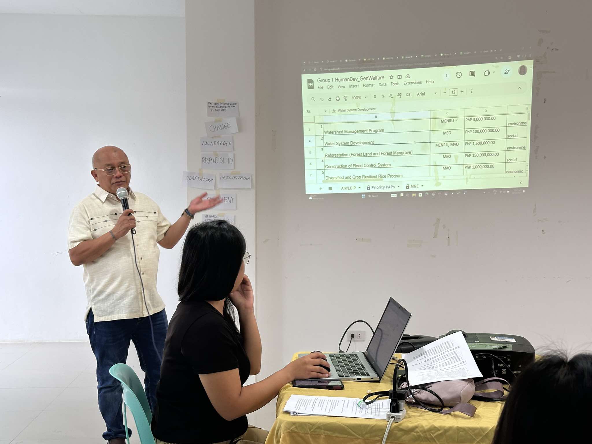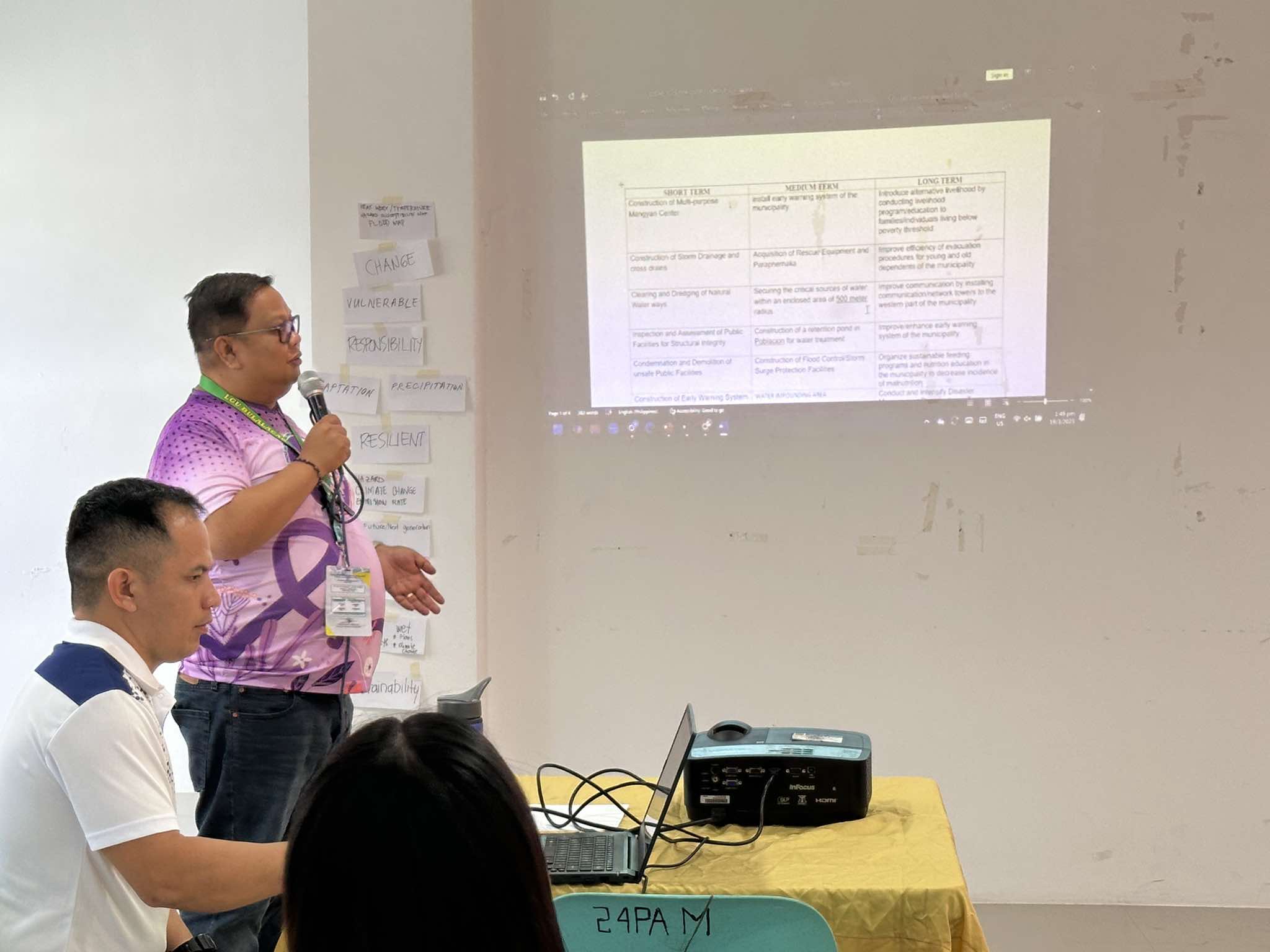 This Planning Workshop was conducted in collaboration with local government unit heads and the Technical Working Group (TWG) of the municipality, barangay officials, National Government Agencies (NGAs), and Civil Service Organizations (CSOs). Through knowledge-sharing, the team aimed to create a more localized, actionable, and resilience-promoting eLCCAP. The planning process was grounded in community engagement and evidence-based approaches, ensuring that the resulting strategies reflected the needs and aspirations of the local population. Throughout the development of the eLCCAP, different activities were conducted, including data gathering, vulnerability assessment, and stakeholder mapping. The DLUP students also prepare a poster highlighting these critical components of the eLCCAP.