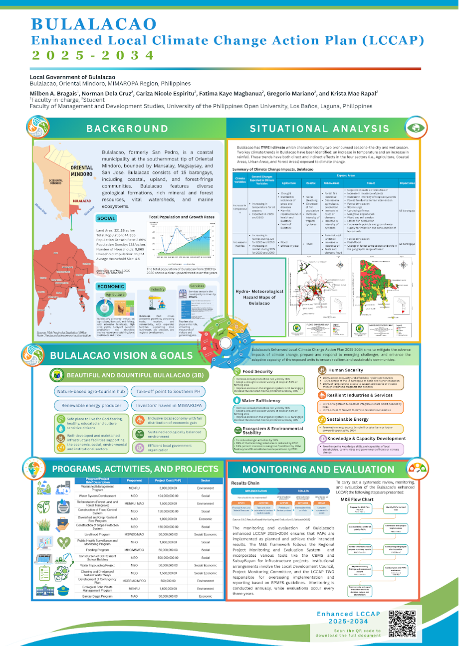 As part of the Pamayanan Urban Planning Studio, ISLA MIMAROPA students from the University of the Philippines Open University (UPOU) under the Diploma in Land Use Planning (DLUP) teamed up with the Local Government Unit of Bulalacao, Oriental Mindoro, in crafting and enhancing the LGU’s Local Climate Change Action Plan to strengthen its climate resilient framework last March 18-20,2025.