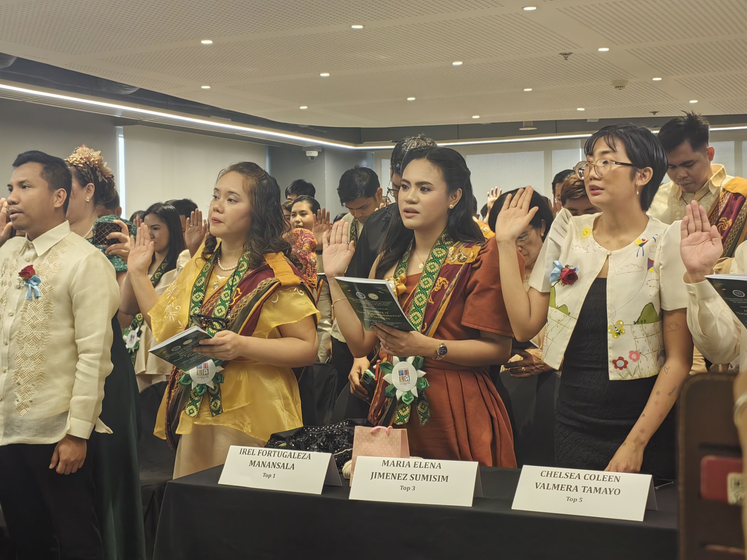 Leading the roster of new EnPs nationwide is EnP Irel Fortugaleza Manansala of the DLUP Class of 2024, who secured Top 1 with a rating of 87.80%. She also delivered the response message on behalf of the new EnPs.