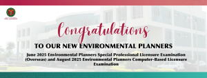 With the theme “Kaagapay,” the oathtaking ceremony underscored the vital role of EnPs in ushering the country towards sustainable development. As defined under Republic Act No. 10587 or the Environmental Planning Act of 2013, the discipline is the Philippine counterpart of the multi-disciplinary art and science of urban and regional planning. It focuses on analyzing, specifying, clarifying, harmonizing, managing, and regulating the use and development of land and water resources in relation to their environs, as EnPs aspire to create sustainable communities and ecosystems.
