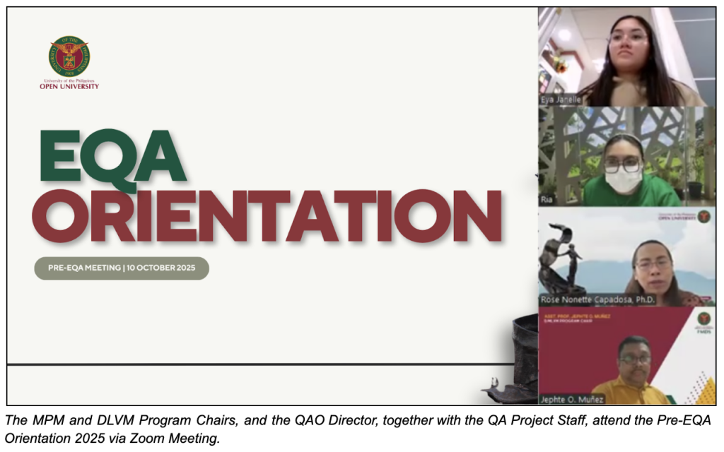 The QAO extends its appreciation to the program chairs of MPM, aProf. Rose Nonette C. Capadosa, and  DLVM, aProf. Jephte O. Muñez, for their active participation and dedication to the University’s quality assurance efforts.