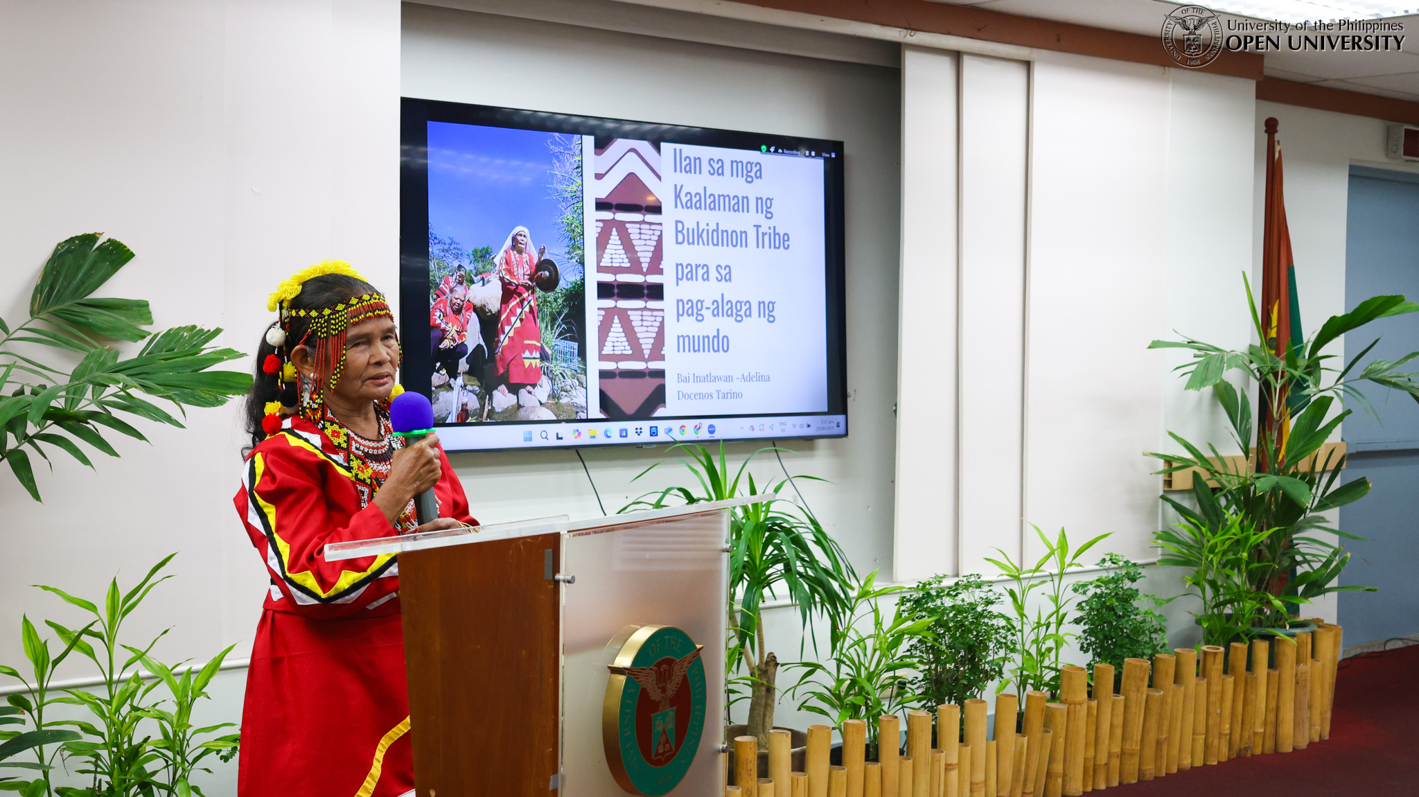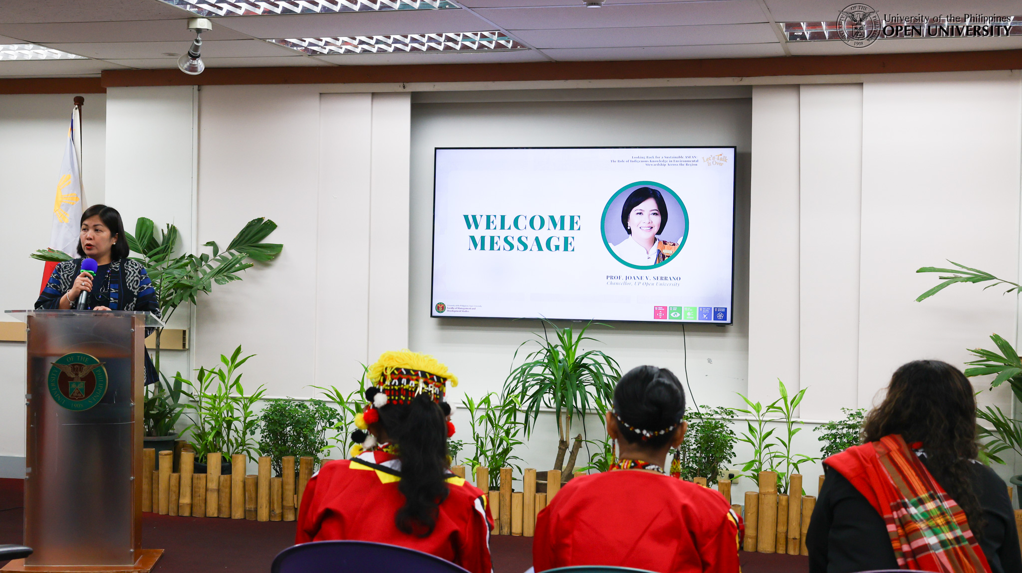 Professor Joane V. Serrano, Chancellor of the UP Open University, officially opened the program with a warm welcome message. She mentioned that through this event, we are recognizing the very important and indispensable contributions of indigenous knowledge systems to sustainable development in Southeast Asia. Chancellor Serrano also hoped that participants not only gain new knowledge from the discussions, but also a deeper appreciation of the role that indigenous peoples play in protecting our environment and shaping our collective future as a region.