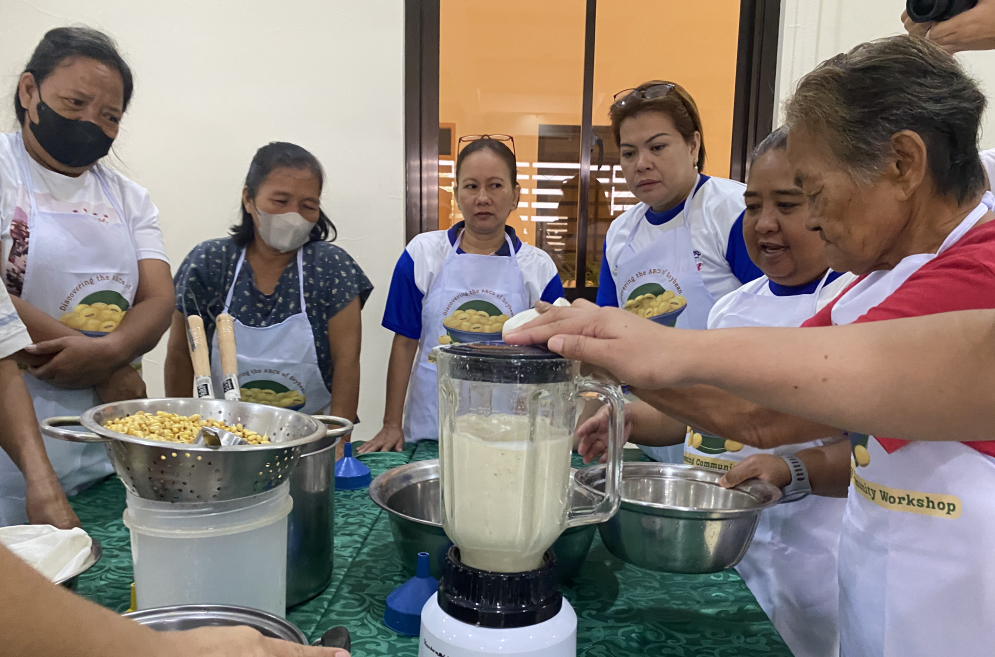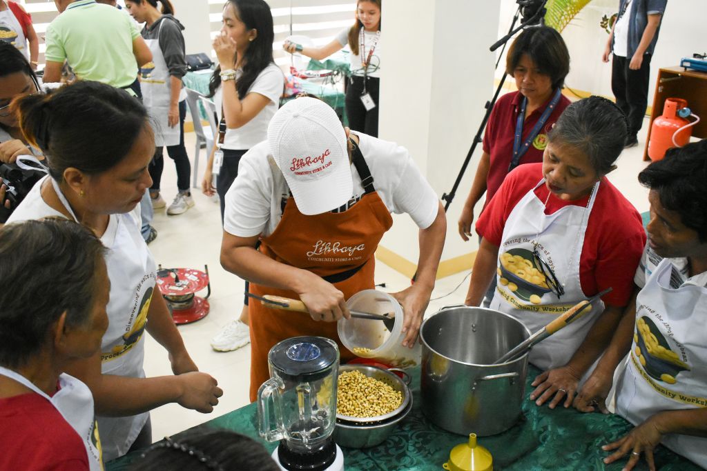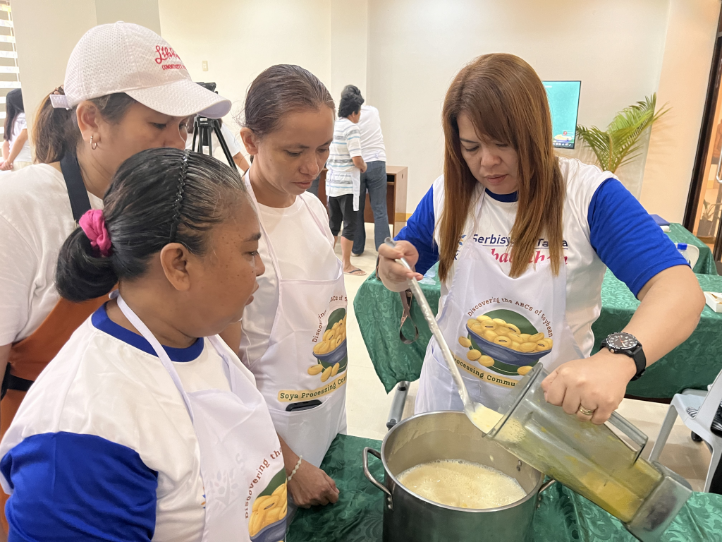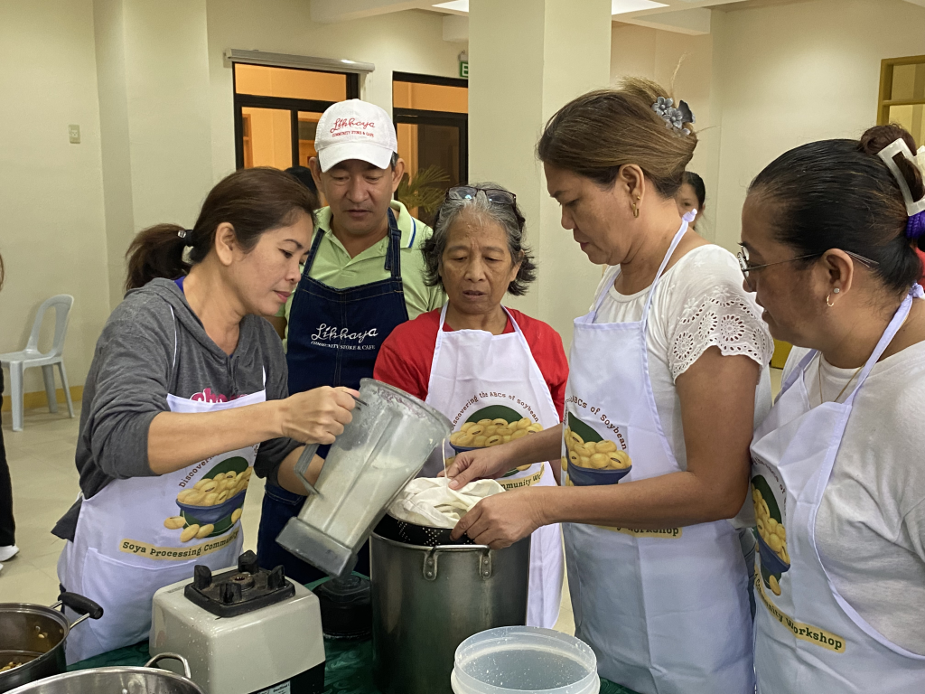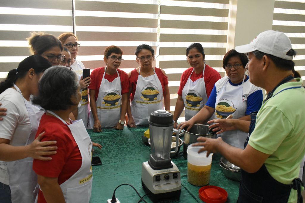 Mr. Rommel “Ome” Rolando Bailey, the owner and lead operations head of LikhayaCommunity Store and Cafe, along with Ms. Maribel Concepcion, facilitated a hands-on training on soybean processing from soy milk to ice candies with different flavors. It was participated in by women from external partner barangays such as Mayondon, Maahas, San Antonio, and Tuntungin-Putho. Some participants were part of the Barangay Fisheries and Aquatic Resource Management Council (BFARMC).