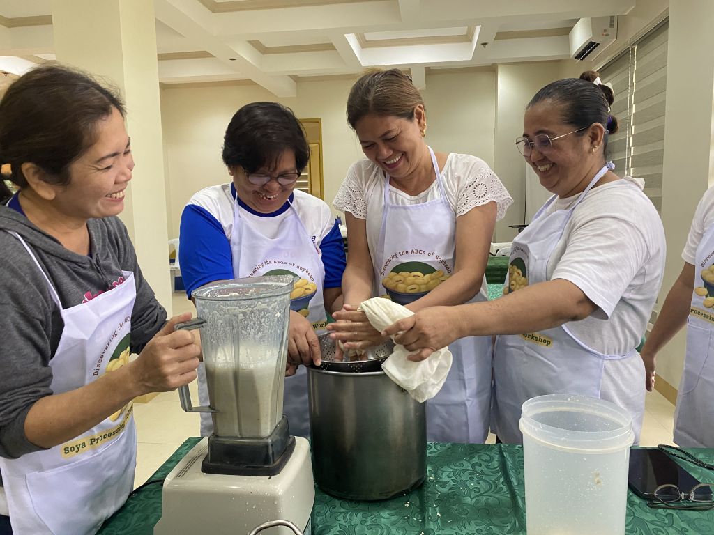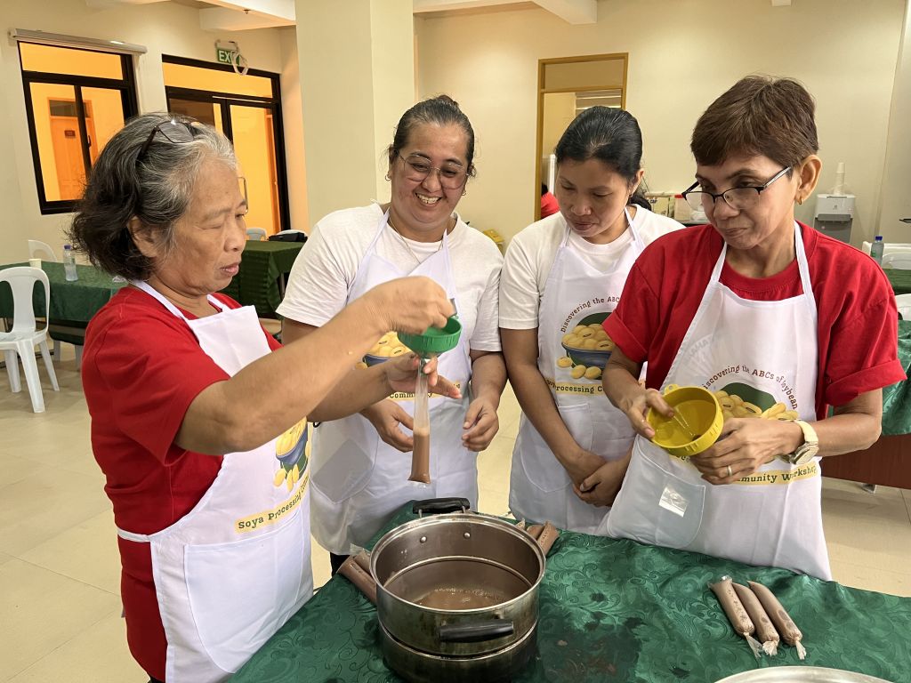 In the workshop proper, Mr. Bailey and Ms. Concepcion showed the participants how to extract soy milk from the soybeans. The collected milk then underwent pasteurization (i.e. being stirred over low heat). Sugar and corn starch were then added. Flavors, such as cocoa powder and blended mango, were used as flavoring to the ice candies as they were packed and tied. Moreover, pancakes were created from the soy pulp, or pureed soybeans filtered in the production of soy milk, where soy milk was concocted, with the addition of bananas, flour, and eggs. The conducted soybean processing workshop, as per the resource speaker, was the first one that introduced the processing of ice candy from soy milk.