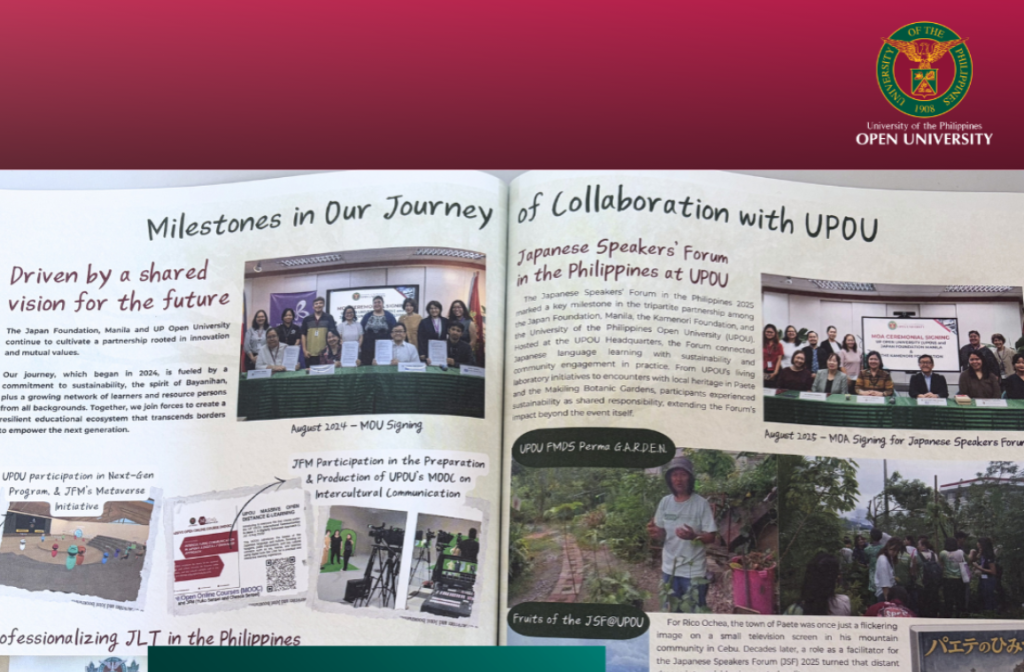 The University of the Philippines Open University (UPOU) was featured in the February 2026 issue (No. 7) of Nihongojin Connect!, the official newsletter of The Japan Foundation, Manila (JFM). The feature article, titled “Milestones in Our Journey of Collaboration with UPOU,” highlights the deepening partnership between the two institutions in advancing Japanese language education and strengthening intercultural engagement in the Philippines.