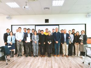 Delegates from UPOU, National Taiwan University of Science and Technology (NTUST) officials, and industry partners gather during the high-level engagement at NTUST
