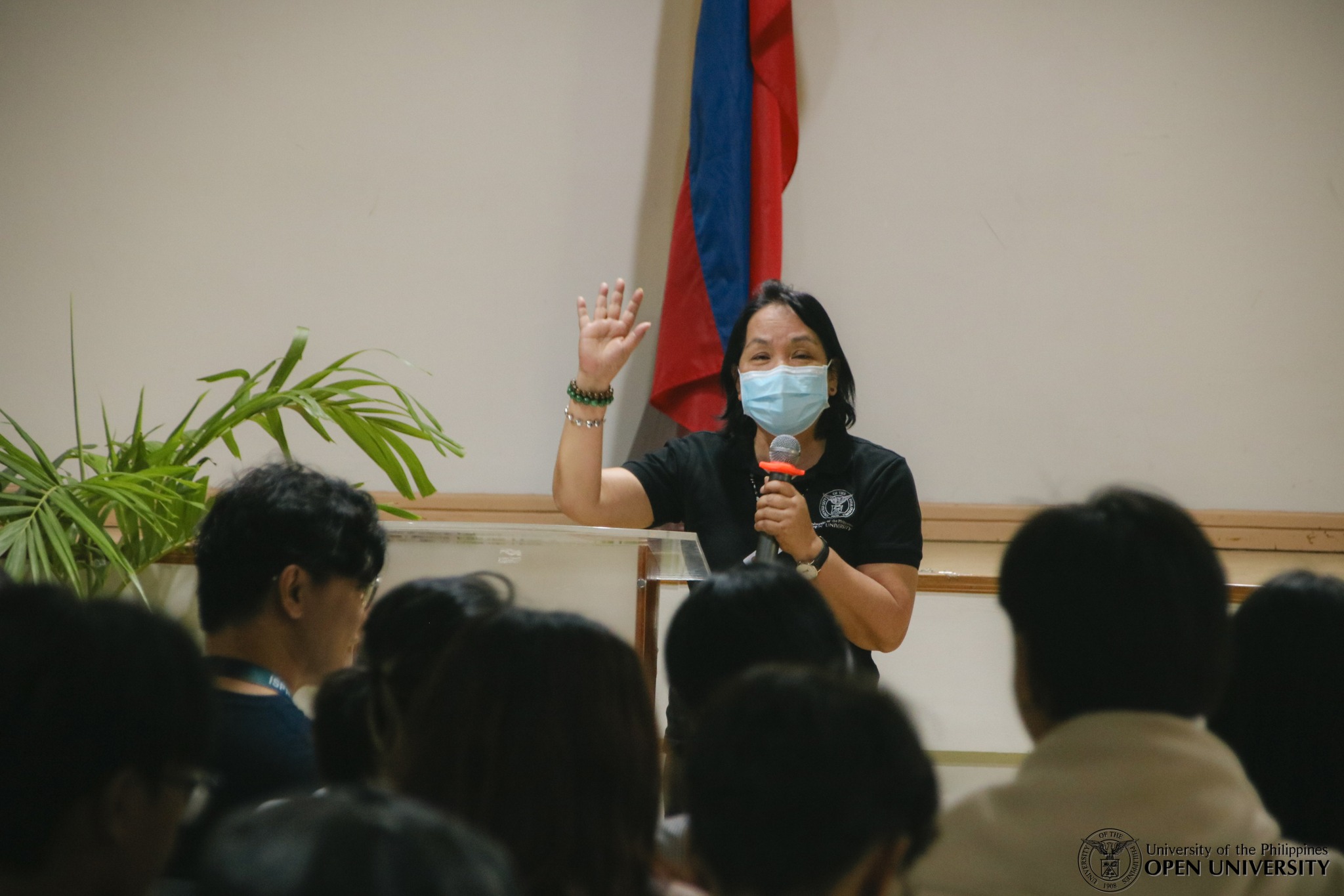 After the Campus Tour, the students who joined onsite gathered at the CCDL Auditorium, where Dr. Jean A. Saludadez, Vice Chancellor for Finance and Administration, officially welcomed them to the UPOU headquarters. She emphasized that the campus is always open to students and conducted a lighthearted pop quiz, which the students eagerly participated in.